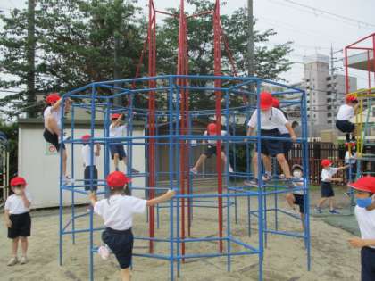 両手と両足のうち,3点は必ず遊具にくっついていると落ちにくいことを知りました。