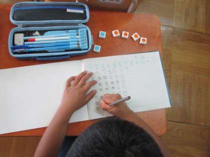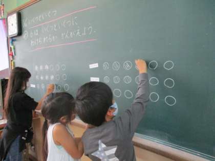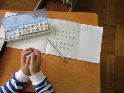 6つの数図ブロックを机にまき,その裏表を記録することで,