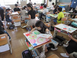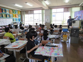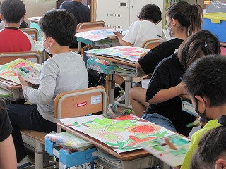 先生から「濃淡をつけて表現する」方法を学び,自分なりに描いては眺めてを繰り返しながら集中して取り組んでいました。