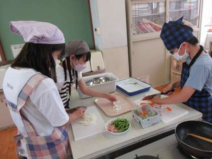 5年生の時にはゆで野菜でサラダを作りました。6年生では,野菜を炒める調理をしました。