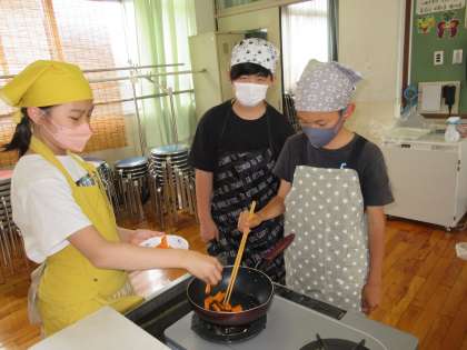 包丁の使い方も,前の時より上手になっている子が多かったです。お家でお手伝いしている証拠でしょうか( ^^) いろどりいためも,ぜひお家でも披露してくださいね♪