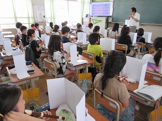 感染防止対策に気を付けながら,リコーダーの学習を進めています。