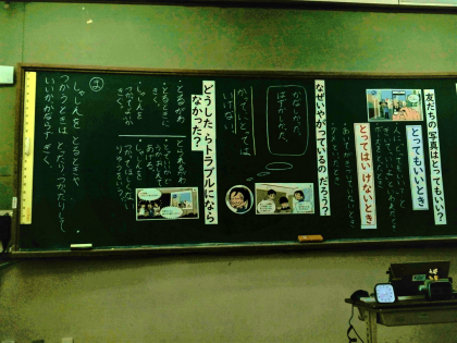 「しょうぞうけん」って知っていますか?タブレットを使う機会が増えて,ついつい気軽に写真を撮ってしまうことがあるように思います。勝手に人物を撮ったり,写真を使ってしまうと,相手の気持ちを傷つけることがあることを学習しました。最後に,「撮ってもよいか聞く。」練習や,撮られたくないとき「はっきりと断る。」練習を,スモールプレーで確かめました。