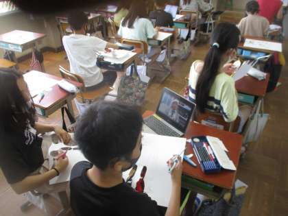 図画工作科では,動きを工夫して少しずつずらしてつなげる