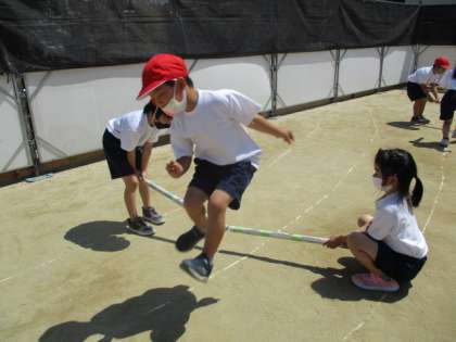 「もうちょっとあげて!」「●●さんがじょうずだった!」と友だちとの関わりも上手になってきた1年生の子どもたちです。