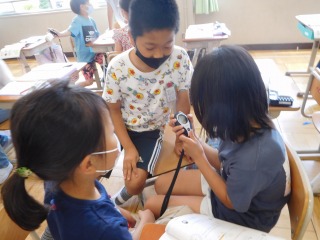 時計の秒針と短針を見て,1分=60秒であることをたしかめました。また,ストップウォッチを使って時間を測ることを通して,10秒の長さや30秒の長さ,1分の長さがどれくらいか体感しました。