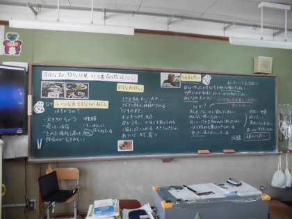 9日は,栄養教諭の松崎先生と一緒に京野菜の「み力」を発見する学習をしました。京野菜の加茂なすや万願寺とうがらしについて,農家の方々がどのような思いで作っておられるのかを考えました。一人でも多くの生産者を増やしたい。京野菜を多くの人に食べて欲しい。京野菜のよさを全国に広げたい。このような思いから京野菜の生産を行っておられることを知ることが出来ました。本日の給食は,その万願寺とうがらしのあんかけでした。子どもたちは,喜んで食べていました。