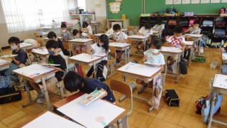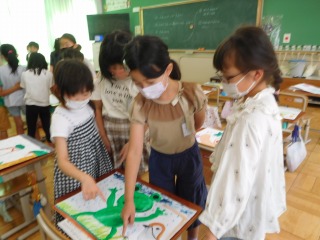 3年生は、図画工作科の学習で「わたしの6月の絵」を描きました。校庭や校内,お家で見つけた6月を思い出し,自分が思う6月をイメージして絵で表現しました。子どもたちは,6月をイメージさせるアジサイの花,雨,にじ,かたつむりなどを色のまぜ方や水の量に気を付けながら工夫して描いていました。友達の表現や工夫を見つけることも楽しみました。