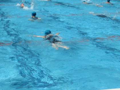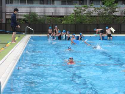アップをした後,バディと一緒に背浮きにチャレンジしました。首の角度や手の広げ方に注意して,できるだけ長い間浮くことができるように練習しました。けのび・ふし浮きの練習もしました。その後は,今,自分のできる泳ぎ方で,できるだけ距離を伸ばすことができるように練習をしました。
