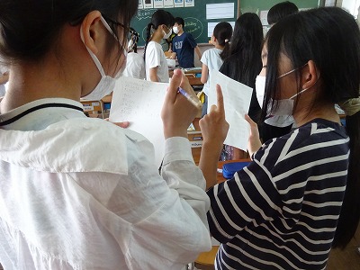 6つのスポーツについて,「見てみたい」と答えた人がクラスに何人いるかアンケートを取り,それが誰なのか探す活動をしました。ゲームでも慣れ親しんだ「Do you want to watch 〜?」の表現をどんどん使い,互いにたくさん聞き合うことができました。