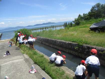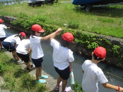 ざりがにはたくさん釣れて,子どもたちは大喜び。