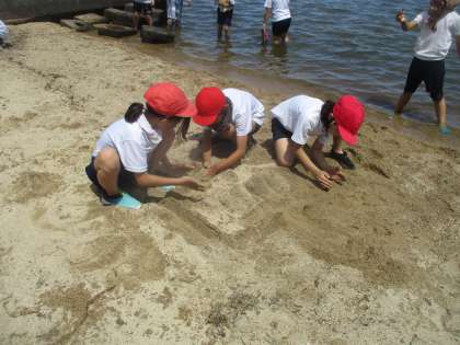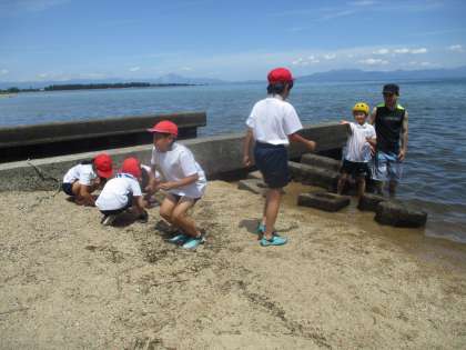浜遊びは,砂を掘る子,石を積む子,水に入る子,それぞれが気持ちよさそうでした。