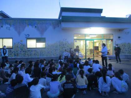 ナイトハイク,星空観察に行きました。天気がよすぎて,暗くなるのに少し時間がかかりましたが,少しずつ星が見えるようになってくると,子どもたちは大喜び。