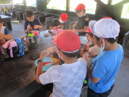 再び勾玉作りに戻り,子どもたちは完成に向けてがんばっています。