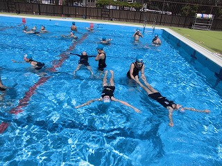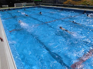 今日の水泳学習も快晴の中,行うことができました。今日は,クロール,平泳ぎで続けて長く泳ぐためにそれぞれ「腕のかき」「足の使い方」「息つぎ」「姿勢」で気をつけるポイントをワークシートに書いてから学習しました。伸びを大切にしたり,水をかくために大きく腕を使ったりしている様子が見られました。また,背浮きでは初めより長く浮けるようになったり,補助の回数も減らしたりしてできるようになってきました。