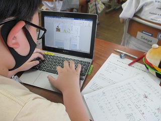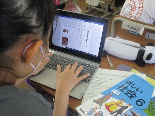 ロイロノートやWordを使って米作りによって変化した当時の社会の様子についてまとめています。