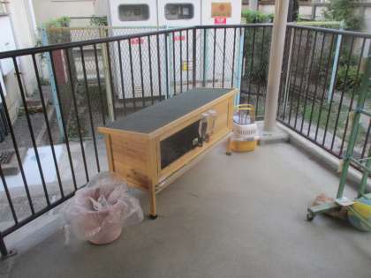 飼育小屋を解体し、保健室横の外に移動しました。
