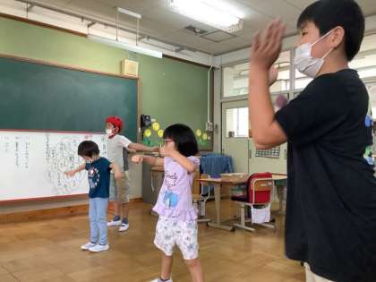 10月26日に開催されるスポーツフェスティバルにて、1・2年生が躍るダンスの練習を行いました。(高学年も付き合ってくれました。)「難しい〜」と言いながらも楽しく、一生懸命躍っていました。これから練習が本格化していきます。またご家庭でも見ていただきますと幸いです。