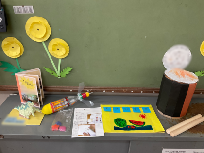 夏休み中、自由研究にご協力いただきありがとうございました。今日の生単の学習で、自由研究の発表会を行いました。子どもたちは、他の子どもたちの作品や、自由研究に興味津々で「私も作ってみたい!」「楽しそう!」などたくさんの感想が出ました。
