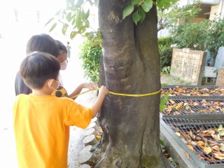 子どもたちは,「巻尺は長い長さのものが測れる」「丸いものの周りの長さも測れて便利!」と,ものさしと比較した巻き尺のよさに気づくことができました。