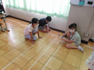 今日は,巻尺を使った測定の仕方を知り,様々なものの長さを測りました。