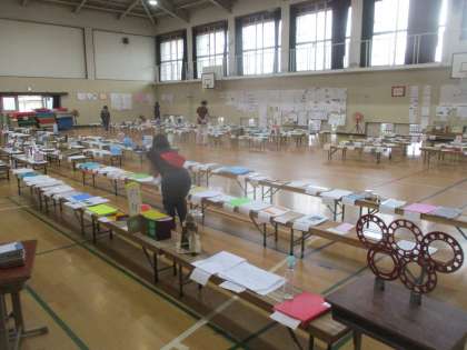 今日、明日と自由研究展が体育館で行われています。