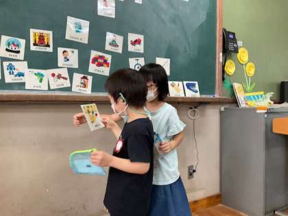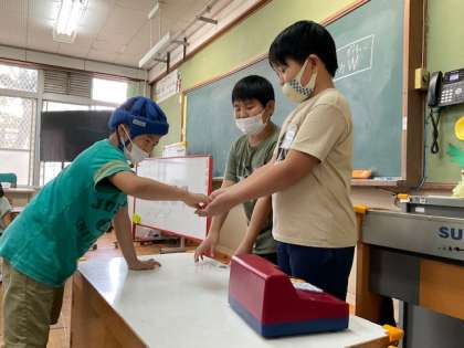 修学旅行で買い物の経験をした6年生にはお店屋さん役をしてもらい、本番さながらの練習を行いました。