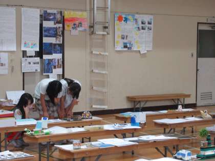 体育館で行われている「自由研究展」を見に行きました。大きな模造紙やノートに書かれている研究レポートをじっくりと読んだり、工作を見ながら楽しんだり、おもいおもいに見学していました。「来年は、どんな自由研究にしようかな…。」と今から来年のことを考えている子もいました。