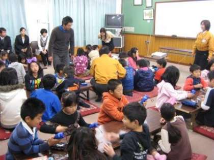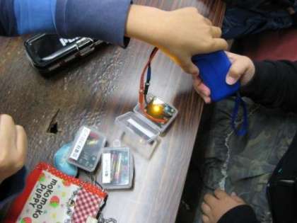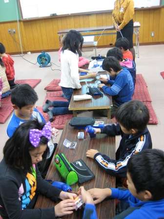 手動発電機では豆電球に明かりはつかないのにLED電球ではすぐにつきました。そのことから電気節約と科学とのかかわりなどを教えていただき子どもたちは熱中して学習に取り組んでいました。