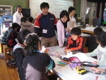 水溶液の性質を調べる学習で子どもたちは先生の指導のもと「ムラサキキャベツ水溶液」をつくり,それをもとにリトマス紙やBTB液などをつかって性質を調べたり,水溶液を使って色実験をしてみたりしました。