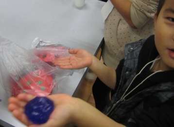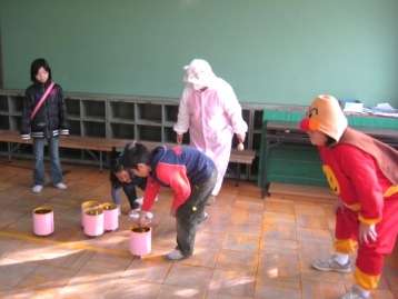 今年は「おやじの会」のスライムづくりが初参加となりました。さくら学級は空き缶に車をつけて,床上を転がして的で止まったら得点が入ります。