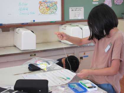 まち針をうつ時も,ミシンを使う時も,協力し教え合う素敵な姿がたくさん見られました。