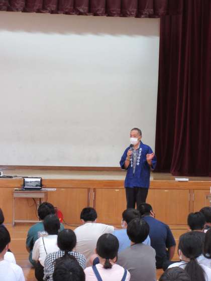 今日は,大文字保存会の理事長の方にお越しいただき,五山の送り火の伝統や,そこにたずさわる方々の思いを聞かせていただきました。