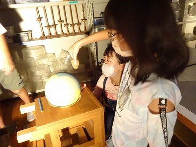 理科室を暗室にして、月と太陽の位置の関係を調べました。モデル実験なので、月や太陽を様々なものに見立てて実験しました。中には、月をジャガイモに見立てるグループも。実験結果から、どんな考えを生み出せるか、6年生の力の見せどころです。
