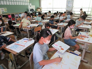 登場人物の動きや周りの様子、大きさや細かいところまでよく考えて一人一人一生懸命に描いています。