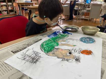 図画工作科「お話を絵にしよう」の学習を行いました。お話を聞いて子どもたちが思い描いた登場人物や、風景がいきいきとした作品に仕上がってきています。完成が楽しみです。