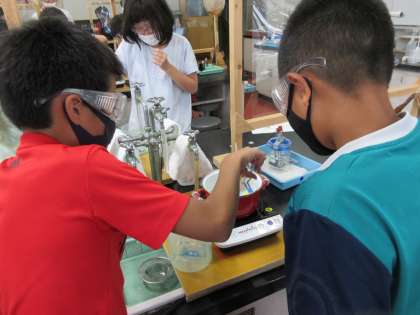 化学,地学,生物,物理のクラスに分かれて,色々な実験に挑戦しました。