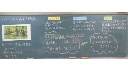 2年生のこころの日では、「ハムハムの森をまもる会」の教材を通して、「個人情報の大切さ」について学習しました。インターネット上には個人情報を聞き出すことを目的としたホームページが存在すること。名前や住所、個人が特定できる情報を「個人情報」ということや、個人情報は大切な情報であるということを確認できました。また、個人情報を聞き出すためにアンケートや懸賞があることを知り、怪しく思ったら親や先生に相談したらいいということを学習することができました。