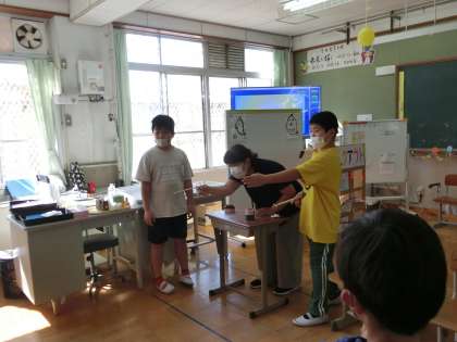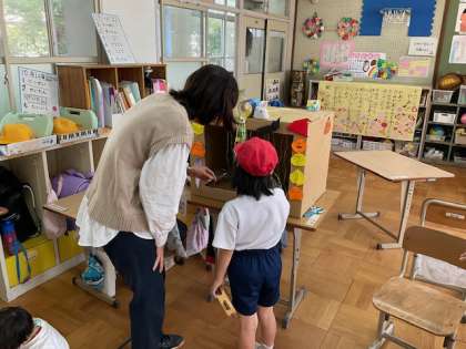今日の生単の学習では、担任以外の教職員を招いてお楽しみ会を開催しました。ストラックアウトや、くじ引などすべて子どもたちが手作りし、自分たちで遊び方を決めました。当日はお客さんに丁寧に説明する姿も見られ、担任も驚かされました。春から大きく成長した姿を見ることができました。