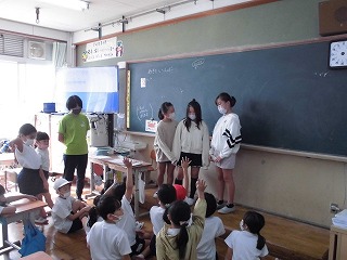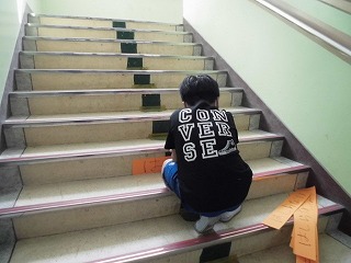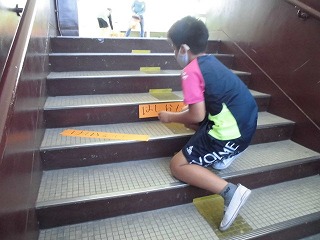 続いて学校のろうかを走らないようにするための会社で階段に「走らない」という標識をつくっている様子や1年生のために遊びを考える会社で教室内でできる遊びを一緒にしている様子です。