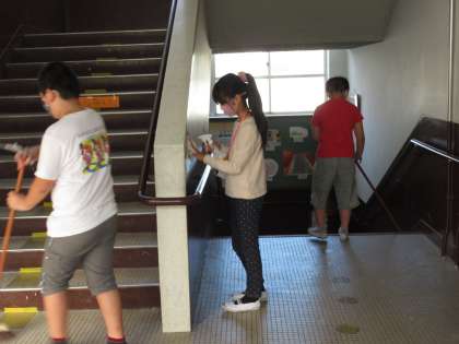 今日は、どの学級の会社も、たくさん仕事をしました。「食品ロスを減らす」ことを目的にしている会社では、給食室で撮影した残菜の写真を使って全校にどのように発信していくかを真剣に考えていました。クリーンサービスの会社は、手洗い場の下の部分などにたまっていたほこりの掃除をがんばりました。会社名とモットーを書き込んだ社員証を首からさげて張り切って仕事をする姿は、とても頼もしいです。