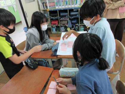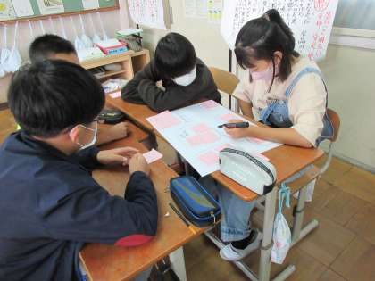 軽い気持ちで、SNSに嘘の書き込みをしてしまった男の子の動画を視聴し、「どんな問題が起こるか」「周りの人にどんな迷惑をかけるか」「自分たちはこれから何に気を付けたら良いか」などについて、グループで話し合いました。