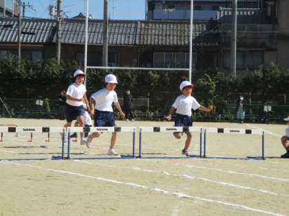 途中でハードルに引っかかってしまったり、転んでしまった子もいましたが、みんな一生懸命ゴールに向かって最後まで走り切りました。