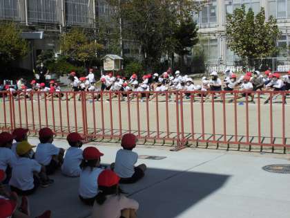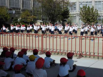 スポーツ大会は低中高と学年ごとに分かれていて中学年・高学年のお兄さんお姉さんの演技を見ることができないので、事前に練習の様子を見せていただきました。3・4年生のソーラン節を見て「みんなの動きが一つにそろっていてきれいだな。」「腰を低く下ろしていてすごいな。」「かっこよかった!」と口々に感想をつぶやいていました。