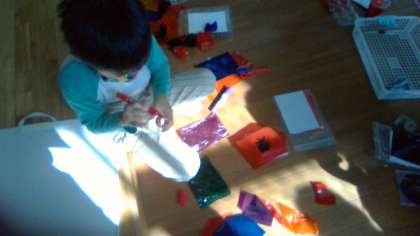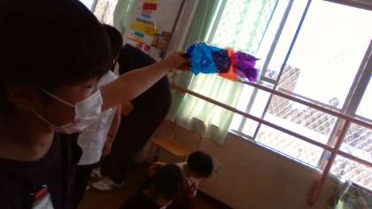 子ども達はそれぞれ試しながらひかりからのプレゼントを