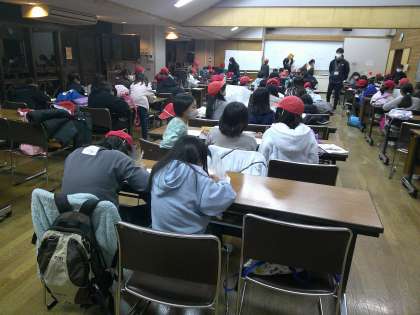 ナイトゲームの後は,研修室で一日の振り返りです。みんなで楽しく,そして一生懸命に書いています。明日,ぜひ,聞いてあげてください。この後は,明日に備えてしっかりと休んでくれることと思います。山の家から,本日のホームページはこれで終了させていただきます。閲覧いただきましてありがとうございました。