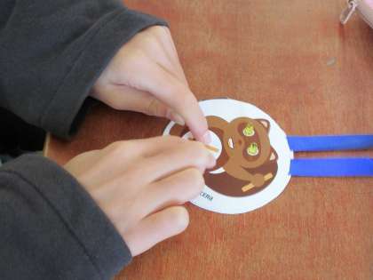 たぬきのお腹を叩いて刺激を与えると、目の電球がチカチカと光り、子どもたちはとても楽しそうにしていました。