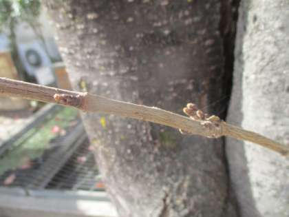 (2枚目の写真)運動場のサクラの葉がほぼ落ちて、次の「芽」を