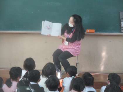 また、読書週間中、学校図書館司書の先生が、「耳で楽しむお話し会」