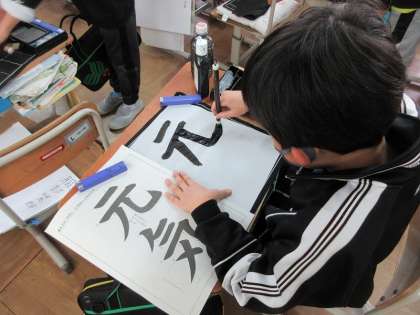 書写で書初め「元気」を書きました。